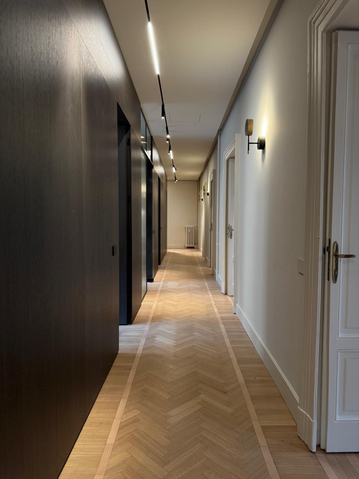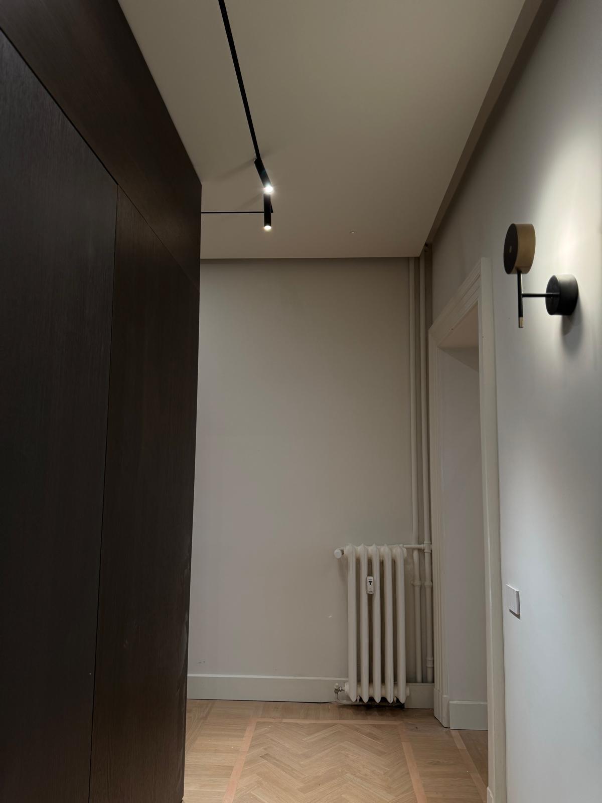 In questa interpretazione la luce diventa architettura. Linee pure, superfici scure e materiali naturali costruiscono un equilibrio tra rigore e calore. Le applique “The Puck” accompagnano il ritmo dello spazio come segni discreti, disegnando una prospettiva luminosa che guida lo sguardo e amplifica la profondità. È una Rêverie che racconta la modernità con il linguaggio dell’essenzialità.
