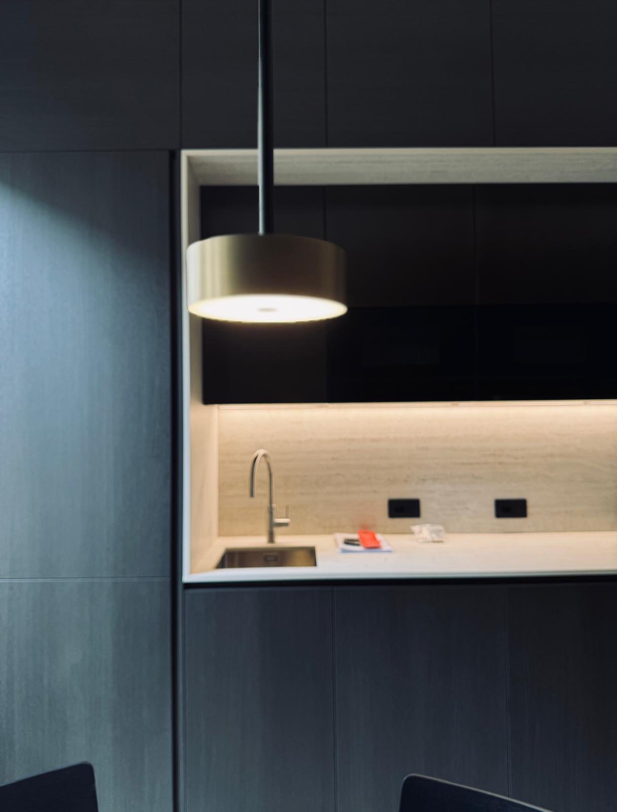 In questa proposta la luce dialoga con la materia trasformando luoghi quotidiani in scenari intimi e sofisticati. Le sospensioni in finitura bronzo diffondono un bagliore morbido che unisce funzionalità e atmosfera, restituendo al gesto tecnico un valore emozionale. Una composizione di armonie calibrate, dove ogni dettaglio concorre a creare comfort, ritmo e identità visiva.
